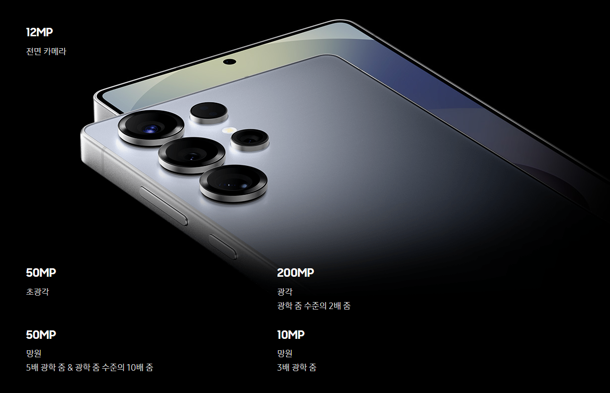 | 카메라 | - 메인: 2억 화소 - 초광각: 50MP - 망원: 10MP (10배 줌), 50MP (3배 줌) |