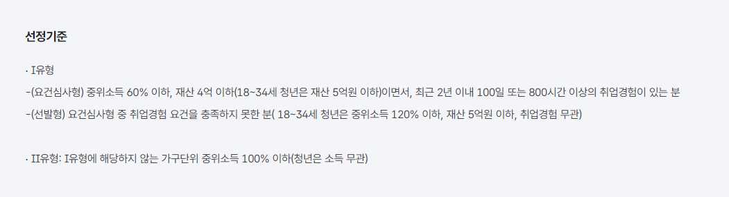 - 소득 기준: 가구의 소득이 기준 중위소득의 60% 이하이어야 합니다. 2023년 기준으로, I인 가구의 중위소득은 약 2,278,000원이므로, 소득 기준은 약 1,366,800원이 됩니다.
