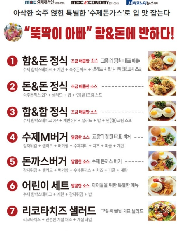 오명환 씨가 선보이는 대표 메뉴는 '숙주 돈가스'와 '함박스테이크'. 전자는 바삭한 튀김 위에 아삭한 숙주를 얹어 식감과 풍미를 극대화했고, 후자는 고기 속 육즙을 살리면서도 고소한 소스로 입맛을 당깁니다.