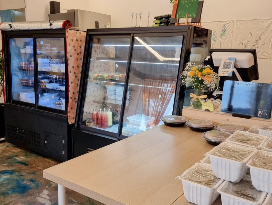 가게 내부는 아기자기한 소품, 사장님의 손그림, 예쁜 화분들이 꾸며져 있어 마음까지 포근해져요. 쇼케이스 안의 반찬은 당일 조리된 것만 진열되며, 매장에서 직접 식사도 가능하다는 점 참고하세요!