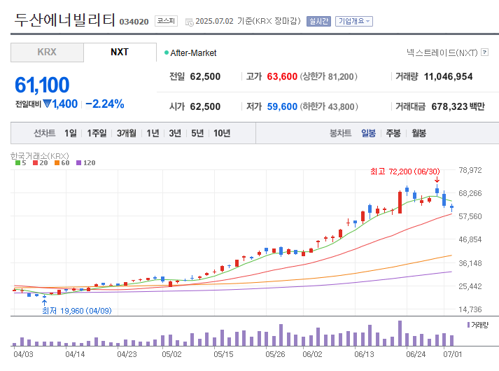 2025년 6월 말, 두산에너빌리티 주가가 무섭게 치솟았어요. 불과 몇 달 전까지만 해도 2만 원대였던 주가가, 단숨에 7만 원을 넘어섰거든요. 이렇게 단기간 급등한 종목은 투자자 입장에서 “지금 비싼 건 아닐까?”, “왜 이렇게 오른 걸까?” 하는 질문이 자연스럽게 따라오죠.