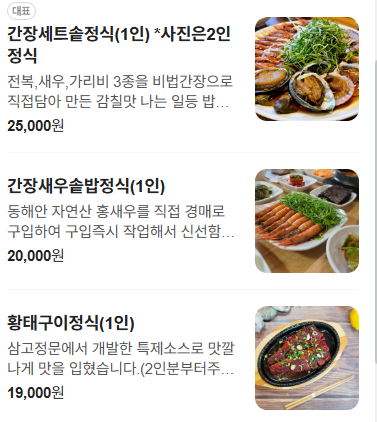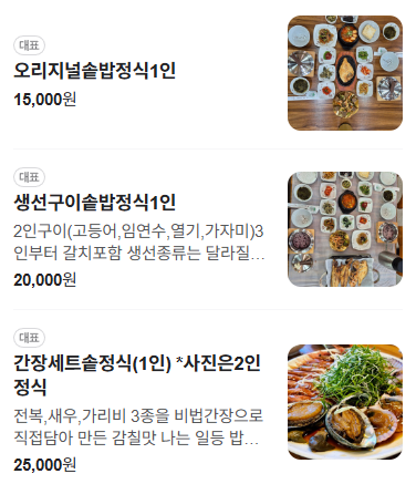 - 간장세우정식: 25,000원