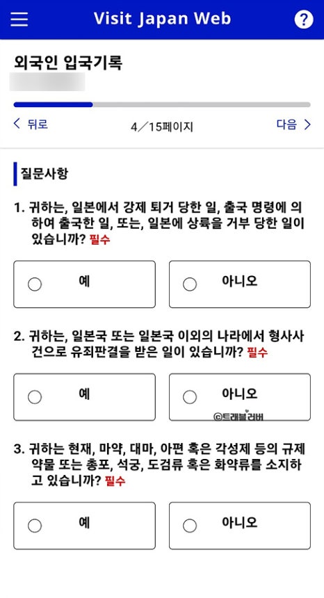 - 면세 관련 질문: 대부분 ‘없음’이나 ‘아니요’에 체크하면 됩니다. 만약 해당되는 항목이 있다면 정확히 입력해 주세요.