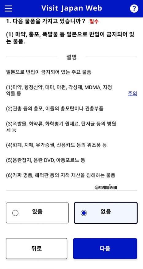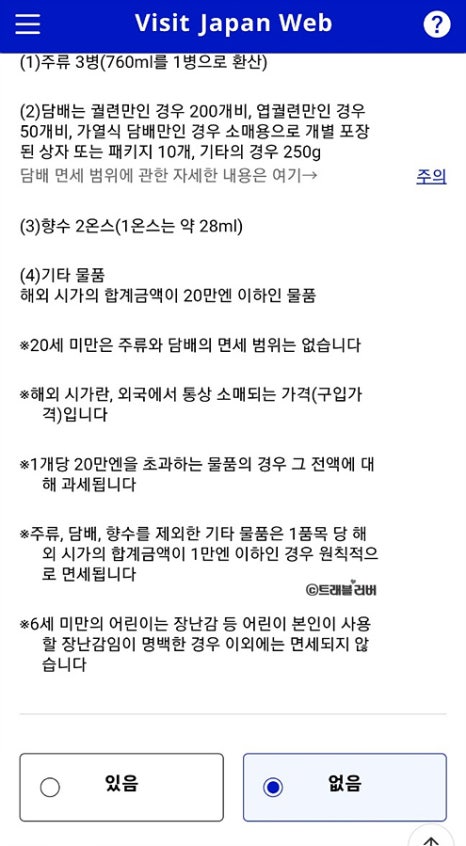 - 면세 관련 질문: 대부분 ‘없음’이나 ‘아니요’에 체크하면 됩니다. 만약 해당되는 항목이 있다면 정확히 입력해 주세요.