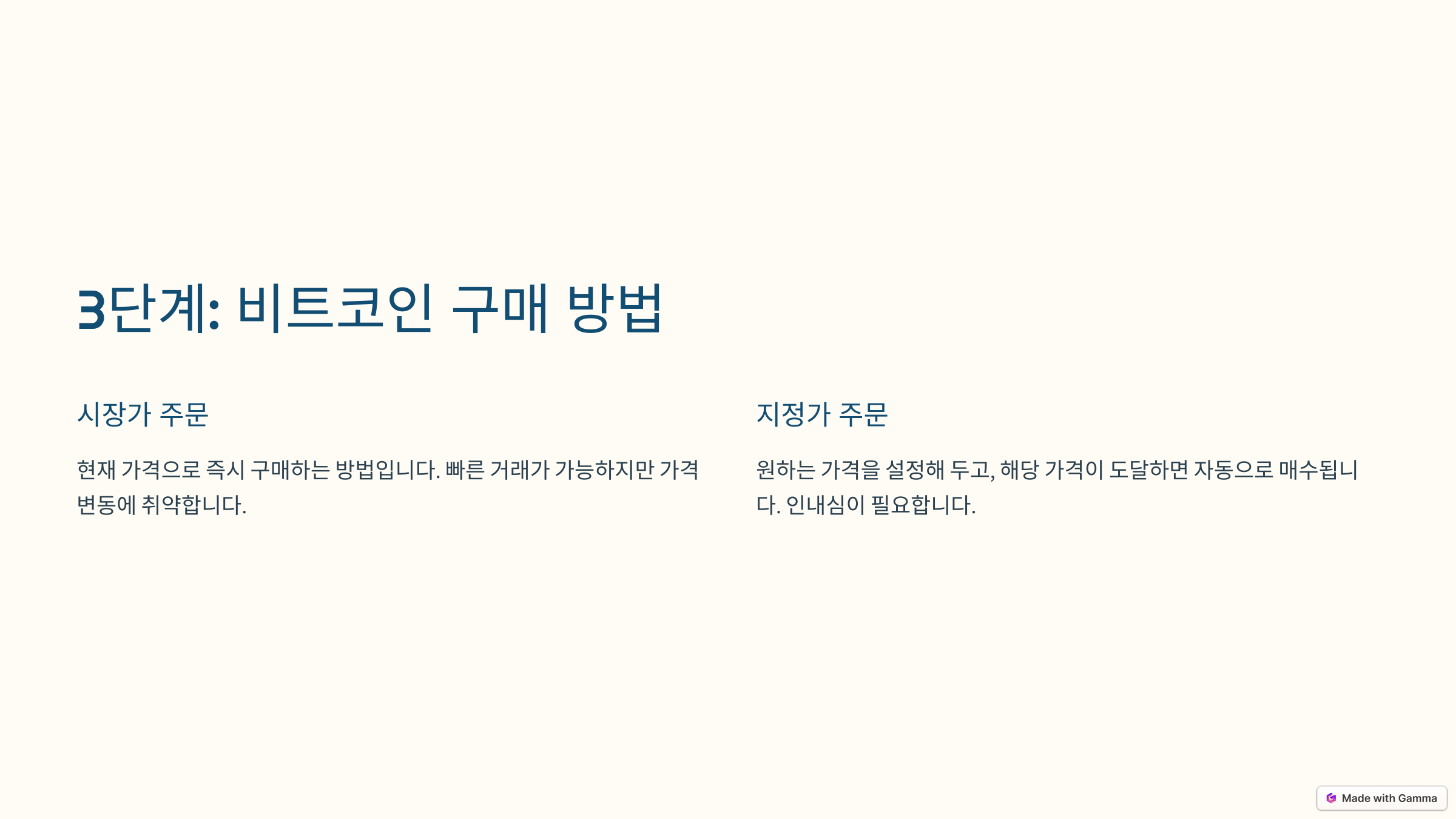 ✅ 3단계: 비트코인 구매 (시장가 vs 지정가)