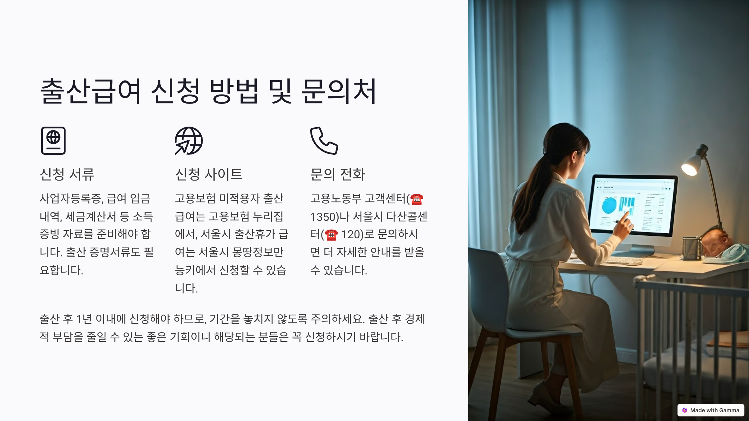 📌 배우자가 1인 자영업자 또는 프리랜서라면, 추가로 ‘배우자 출산휴가 급여’(80만 원)를 받을 수도 있습니다.