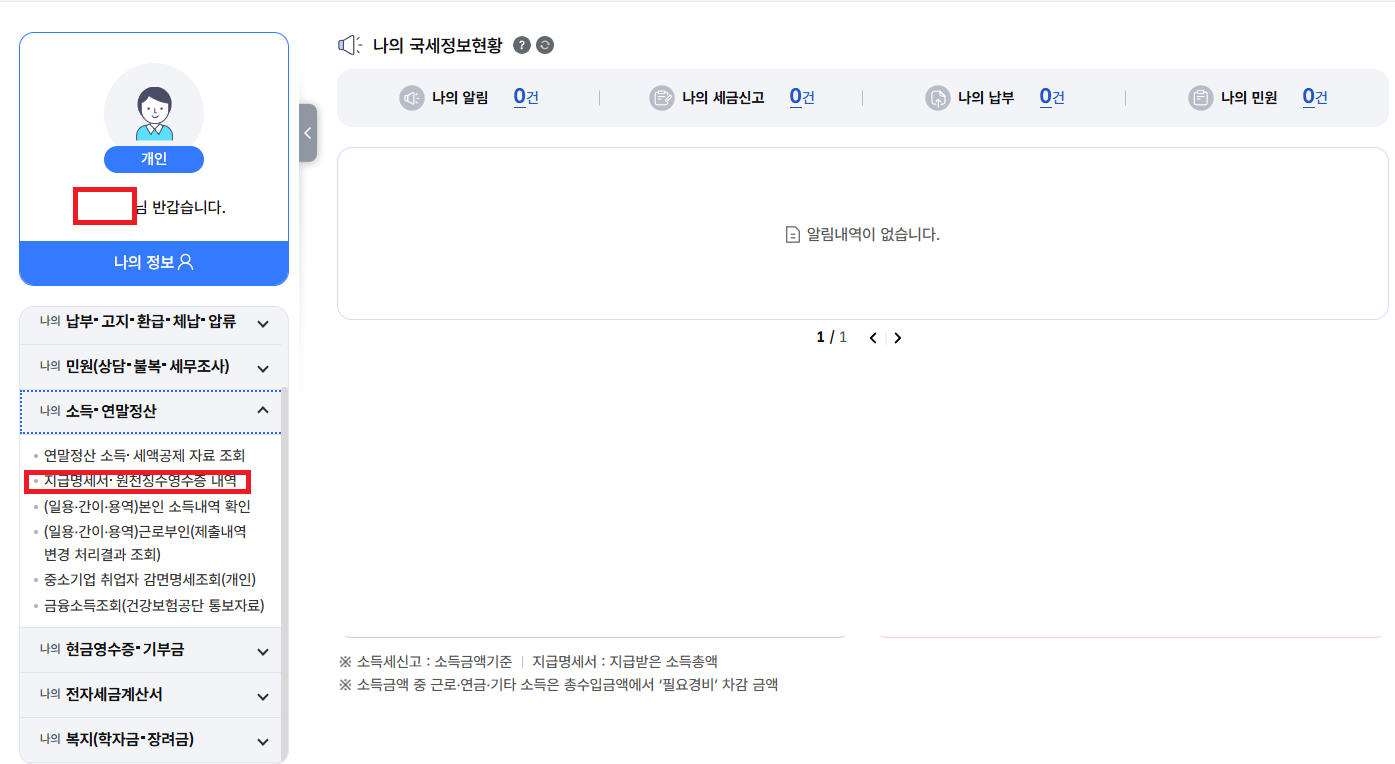 이걸 확인하려면 국세청 홈택스를 이용하면 됩니다.
