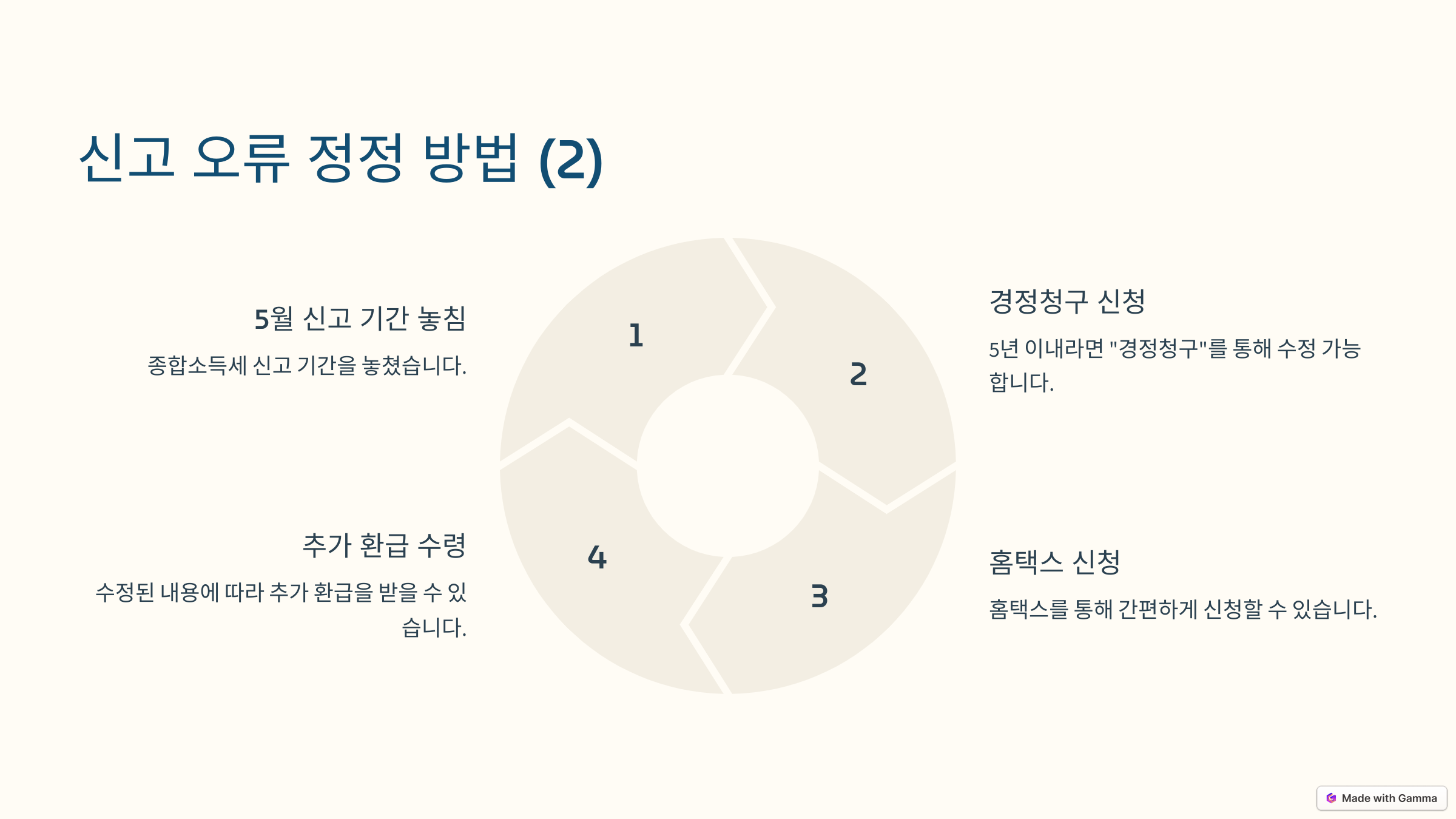 걱정하지 않아도 됩니다. 법적으로 5년 이내라면 "경정청구"를 통해 수정 가능합니다.
