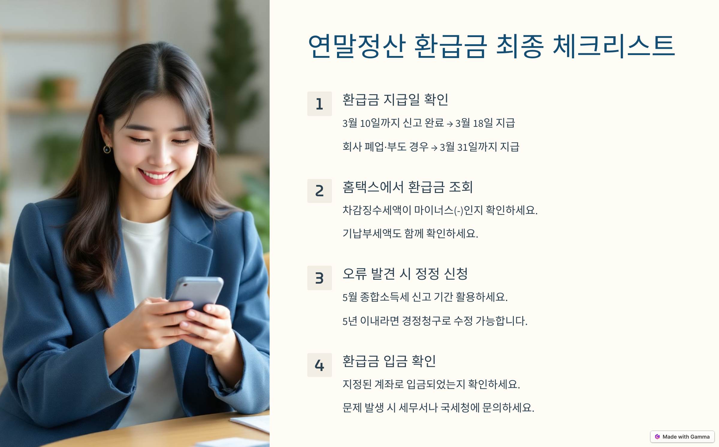 - 3월 10일까지 연말정산 신고 완료 → 3월 18일 지급