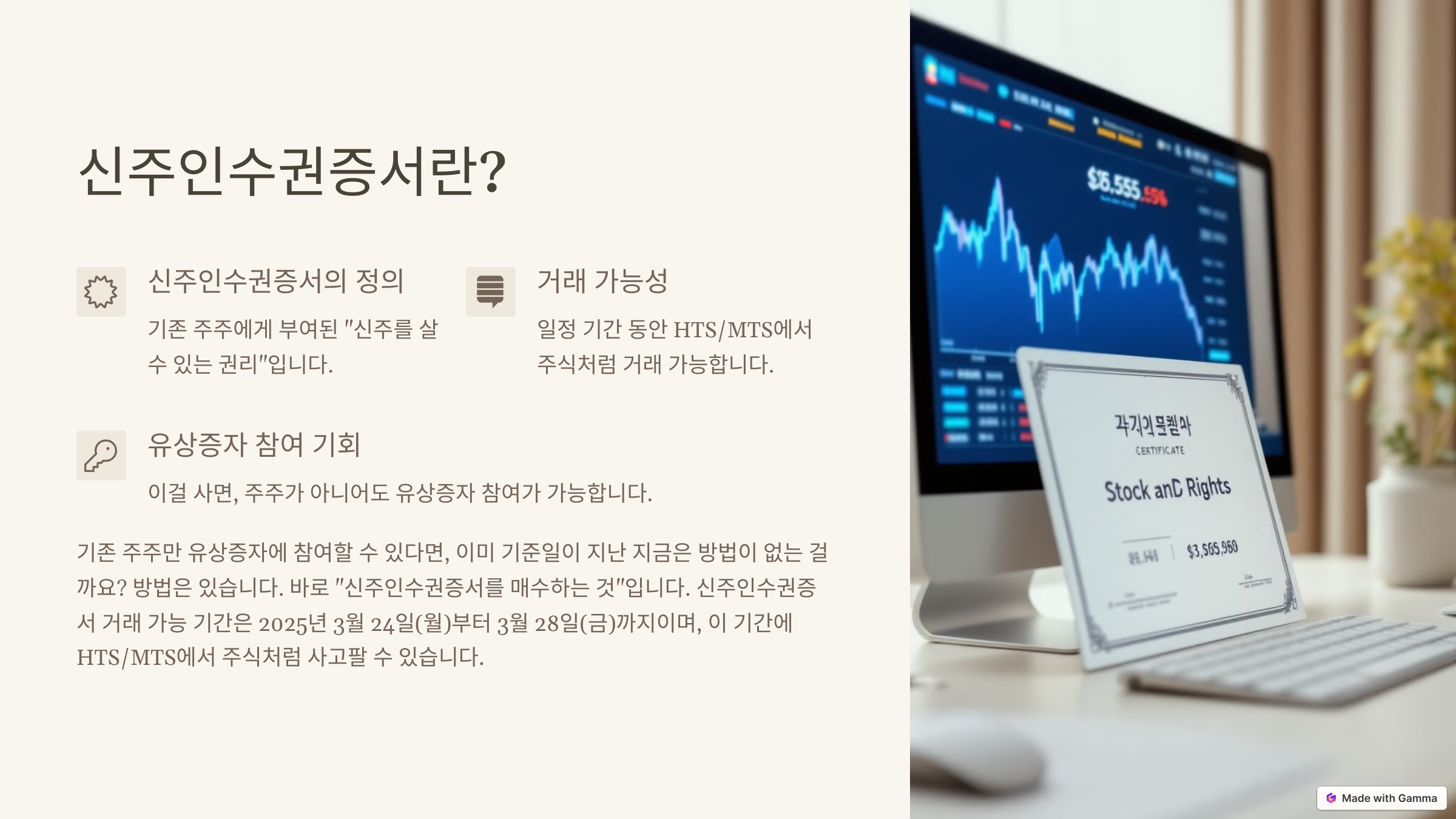📌 HTS 화면번호: 키움증권 기준 ‘8640’ (신주인수권증서 거래 화면)