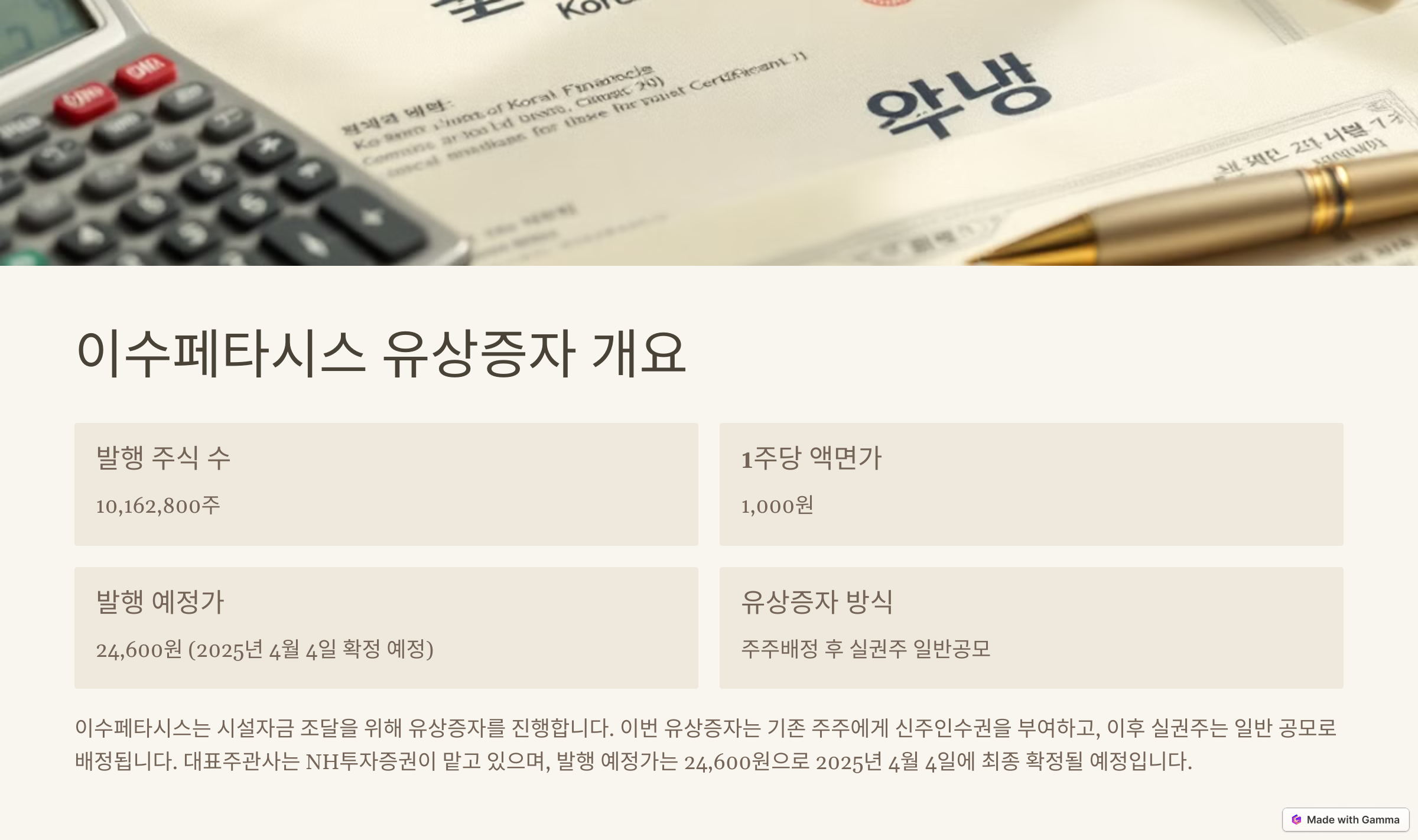 🔍 이수페타시스 유상증자 핵심 요약