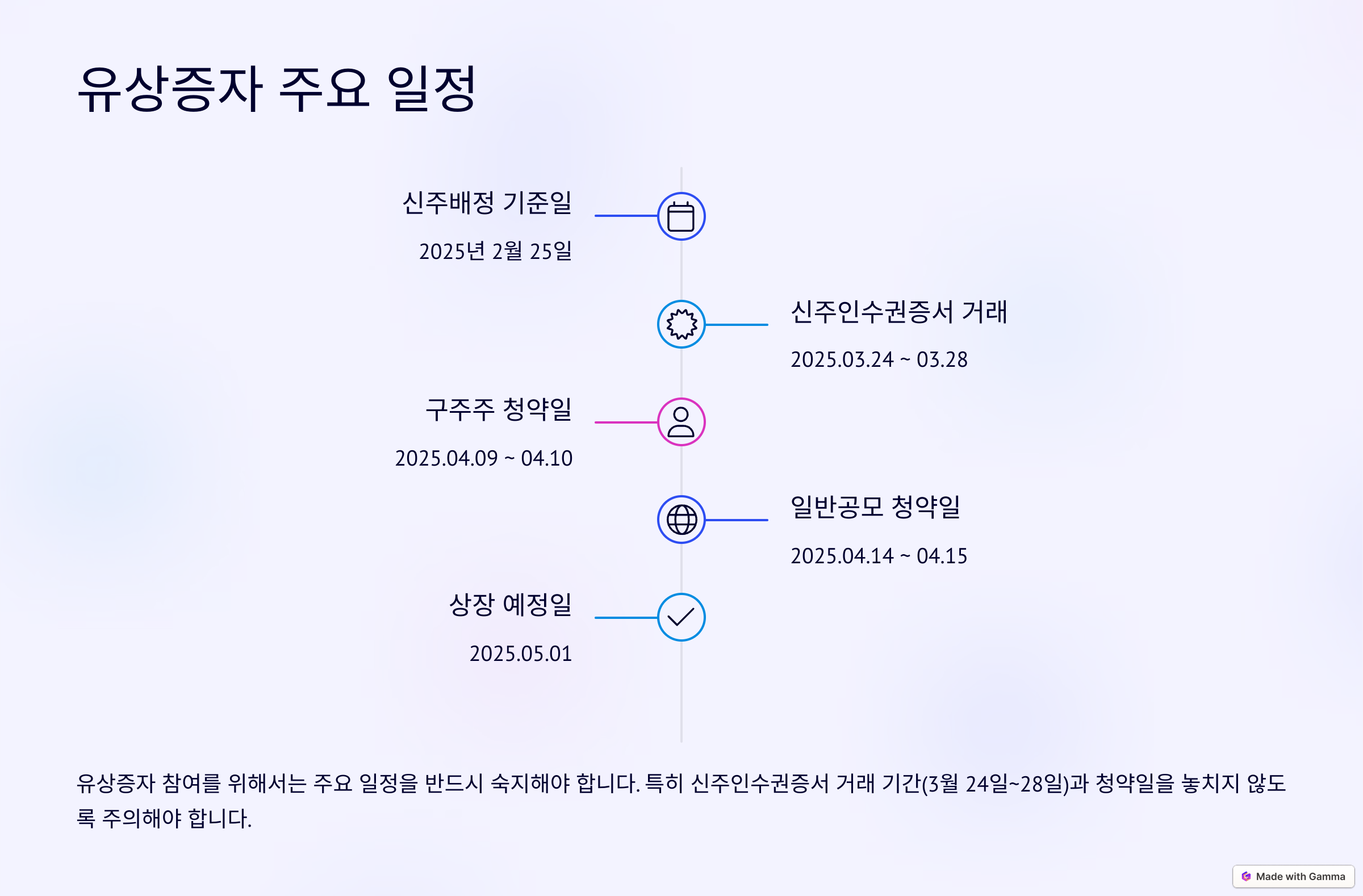 | 구주주 청약일 | 2025.04.09 ~ 04.10 |
