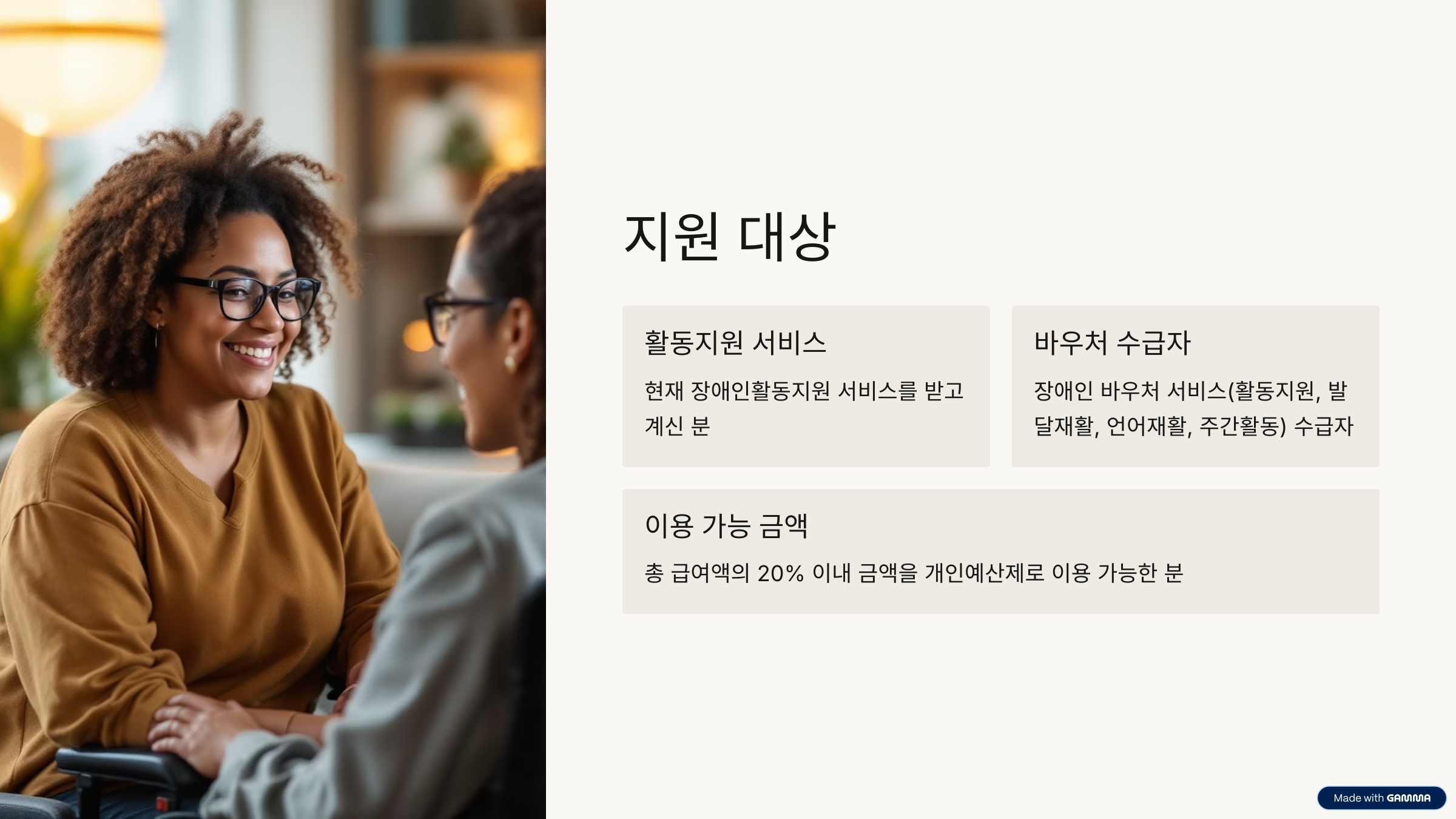 - 기존 활동지원 서비스만으로는 아쉬웠던 분