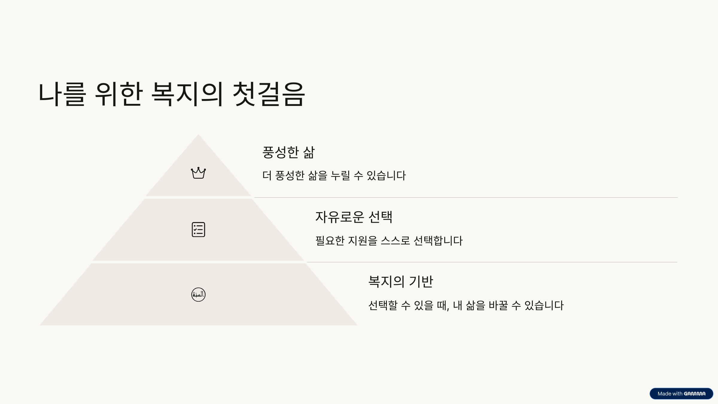 복지는 '주는 것'만으로 완성되지 않습니다. 선택할 수 있을 때, 내 삶을 바꿀 수 있습니다.
