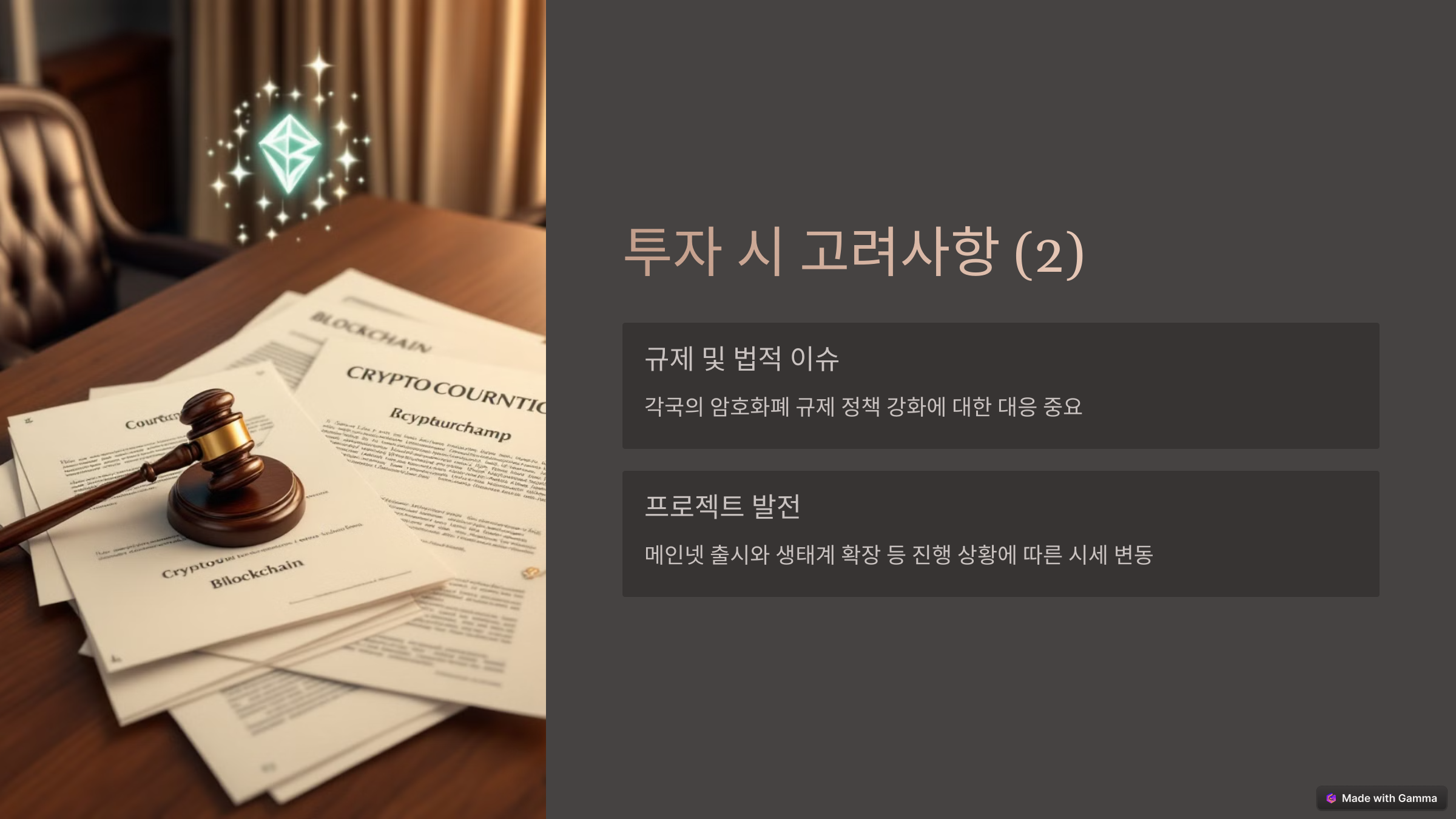 현재 유통량이 제한적이지만, 메인넷 전환 등으로 대규모 물량이 시장에 풀릴 경우 가격 하락의 가능성이 있습니다.