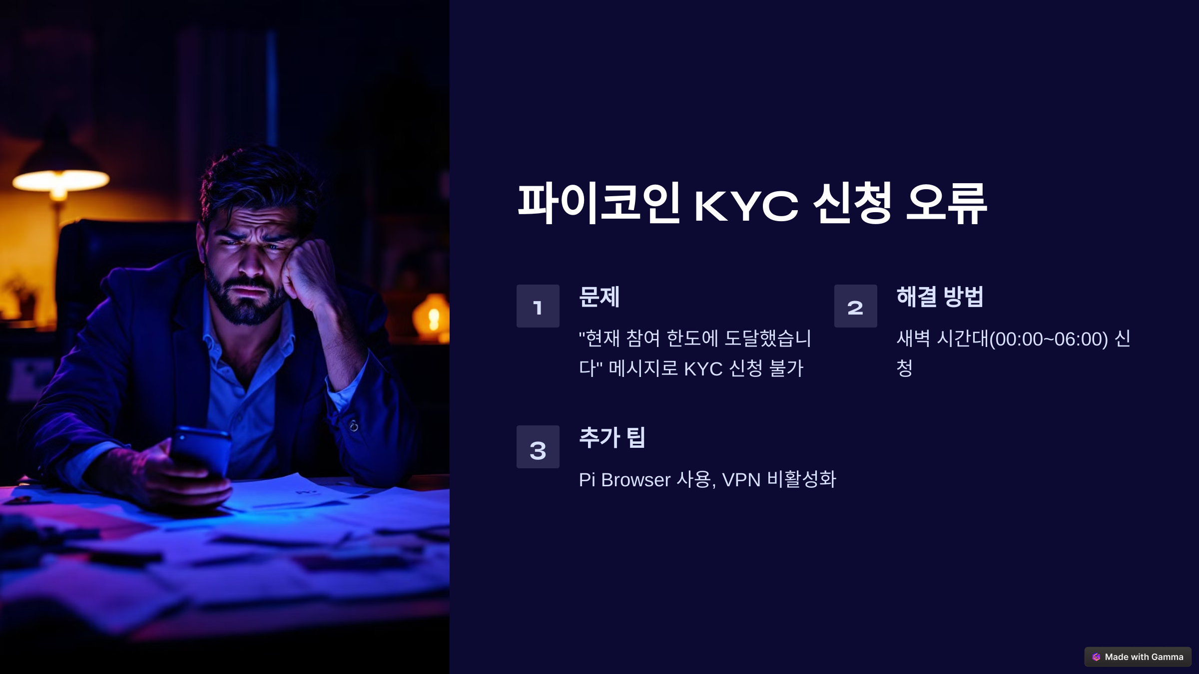 1️⃣ 파이코인 KYC 신청 오류 – "현재 참여 한도에 도달했습니다"