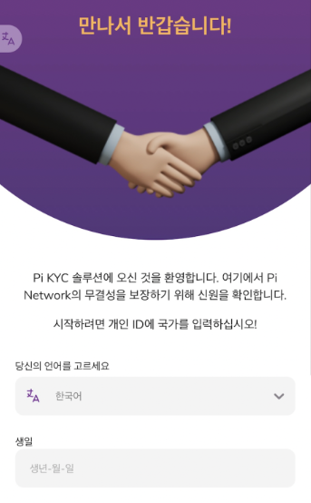 - Pi Browser 실행 후 KYC 앱 접속