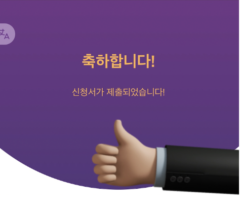 모든 단계를 마치면 "축하합니다! 신청서가 제출되었습니다!"라는 메시지가 나타납니다.