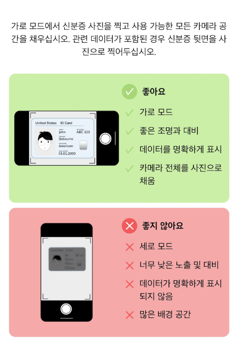 신분증 촬영 시 주의사항