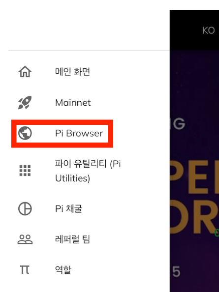 - "Pi Browser"를 선택합니다.