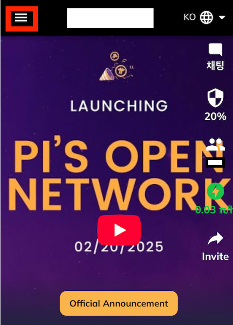 - Pi Network 앱을 실행합니다.