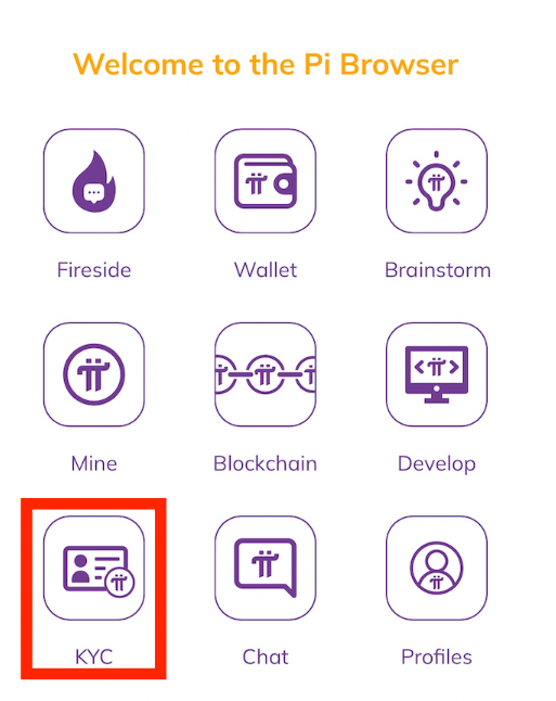 - Pi Browser 메인 화면에서 "KYC" 아이콘을 클릭합니다.