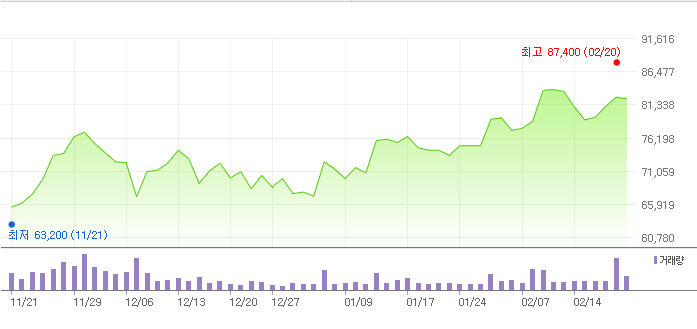 - 주가: 80,200원 (전일 대비 +13.16%)