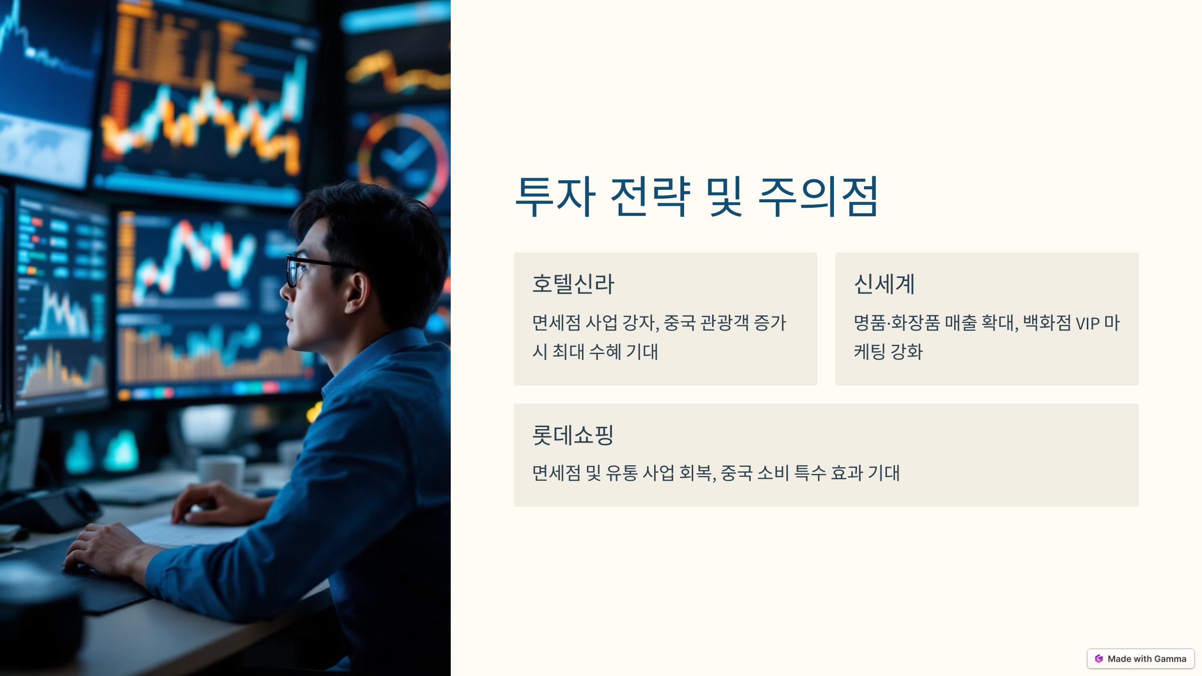하지만 단순한 기대감만으로 투자 결정을 내리기보다는, 중국 관광객 증가 속도, 소비 패턴 변화, 유통 기업별 경쟁력 등을 면밀히 분석해야 한다.