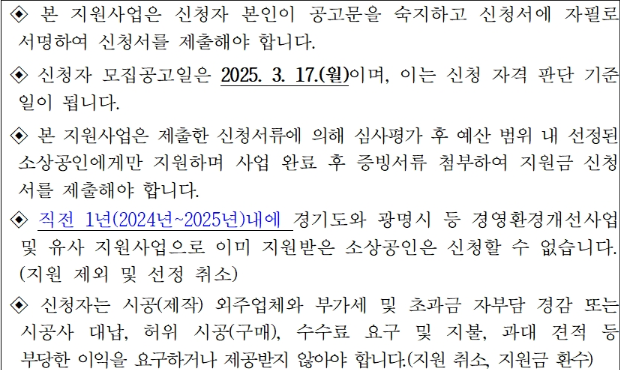 | 2. 신청 서류 준비 | 사업자등록증, 환경개선 계획서, 사업장 사진, 임대인 동의서 (임차 매장) |