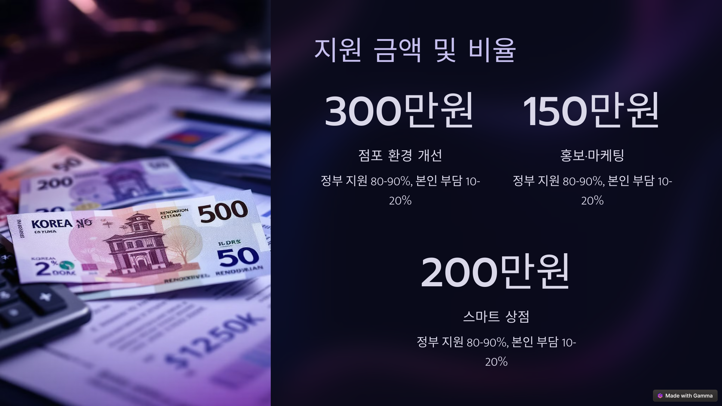 ✅ 지원 금액 & 지원 비율