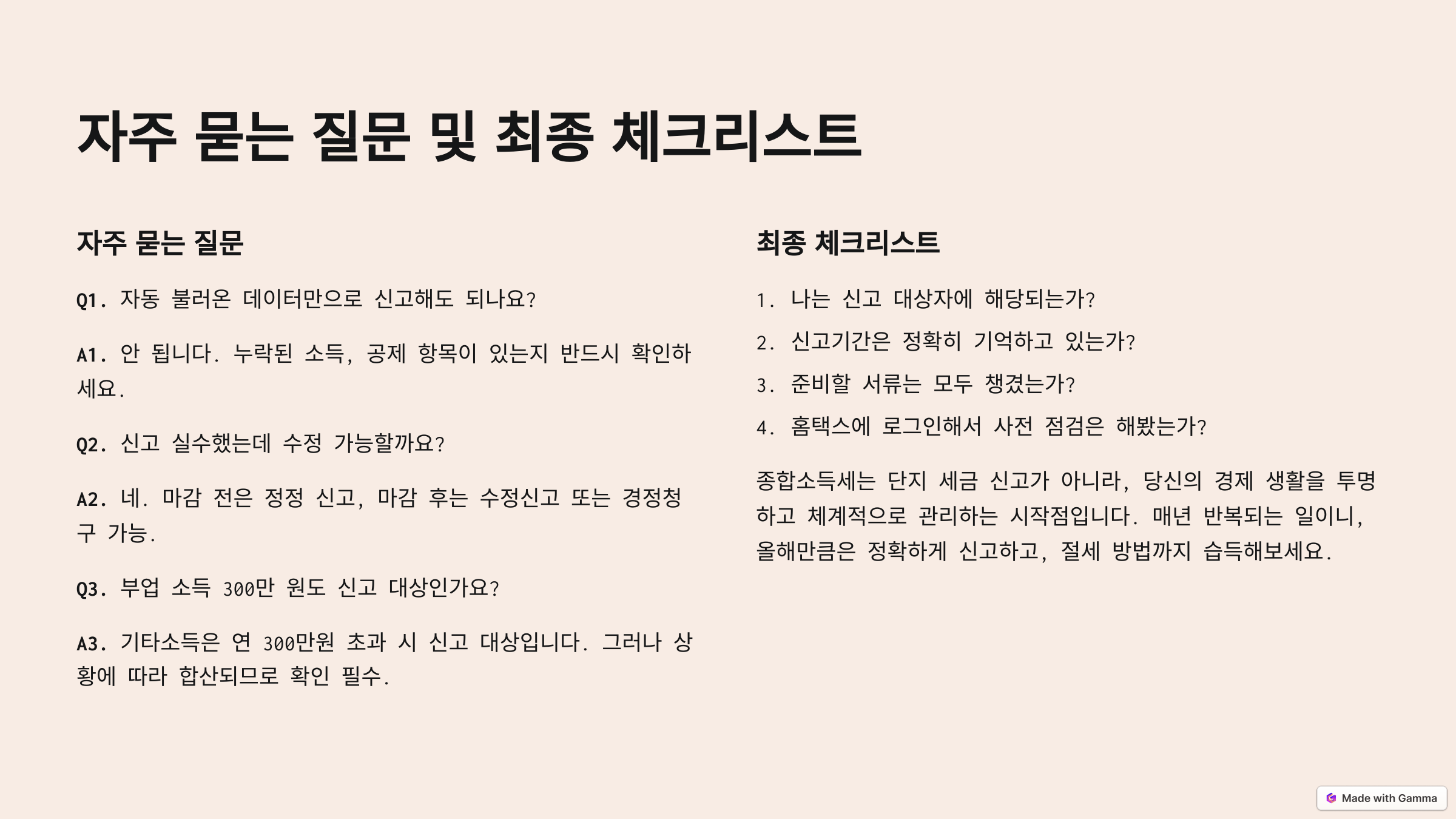 종합소득세는 단지 세금 신고가 아니라, 당신의 경제 생활을 투명하고 체계적으로 관리하는 시작점입니다. 매년 반복되는 일이니, 올해만큼은 정확하게 신고하고, 절세 방법까지 습득해보세요.