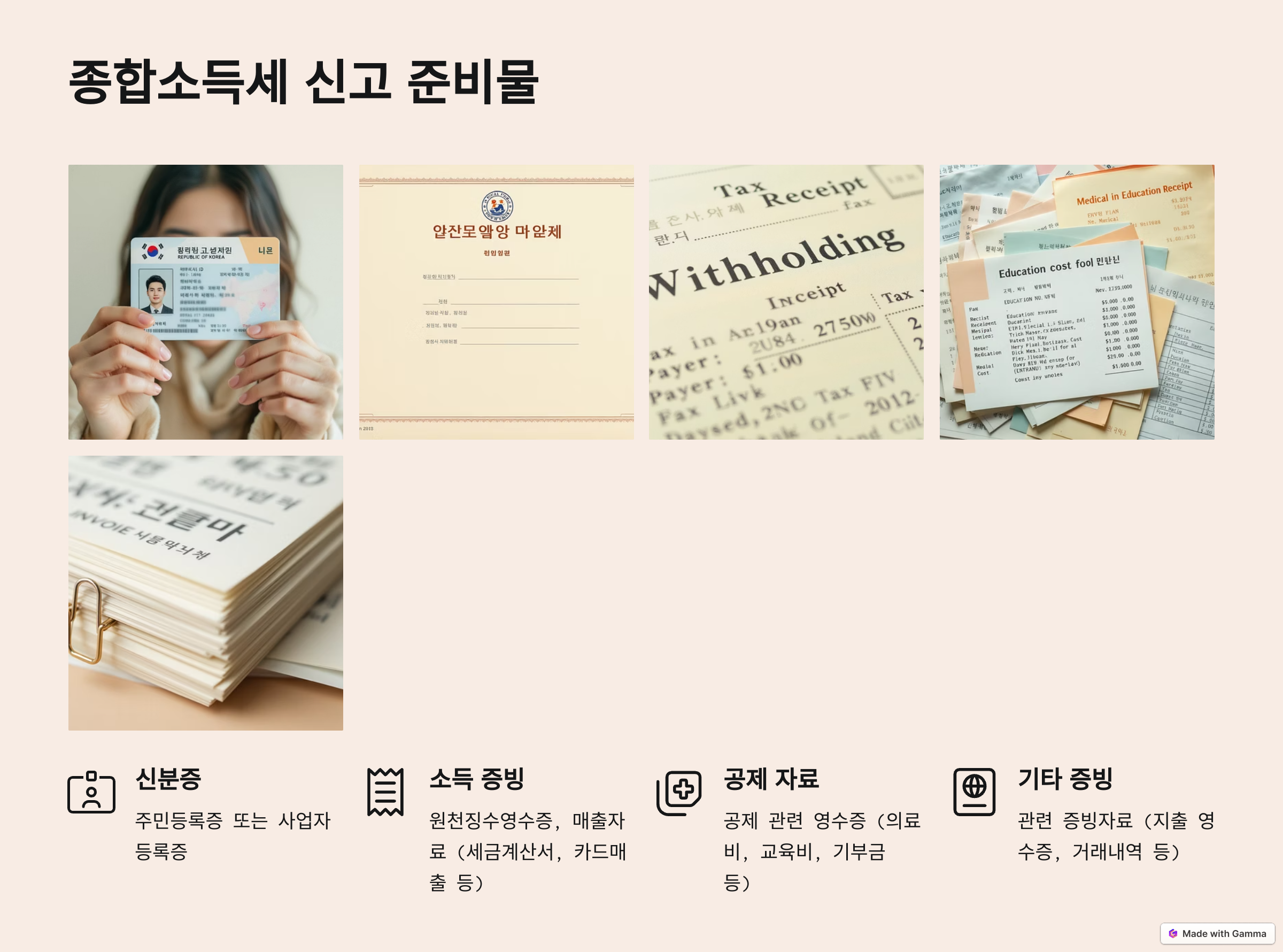 - 공제 관련 영수증 (의료비, 교육비, 기부금 등)